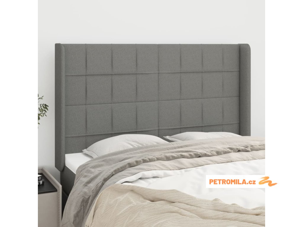 Čelo postele typu ušák tmavě šedé 147x16x118/128 cm textil