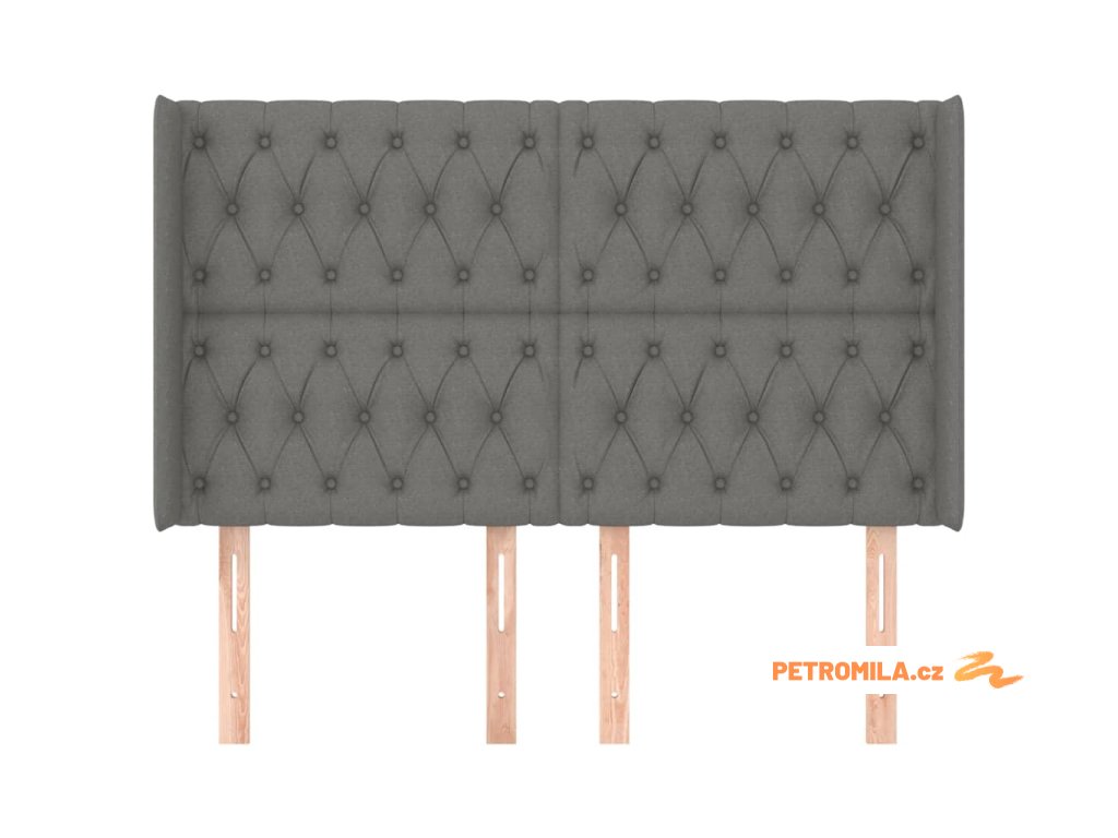 Čelo postele typu ušák tmavě šedé 147x16x118/128 cm textil