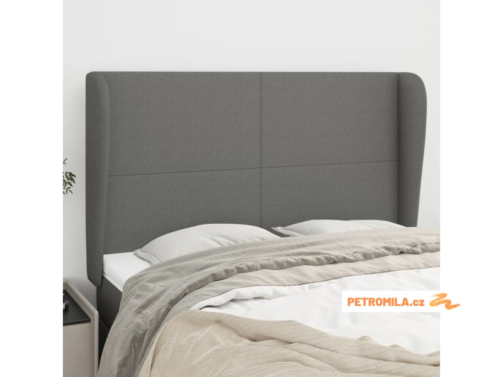 Čelo postele typu ušák tmavě šedé 147x23x118/128 cm textil