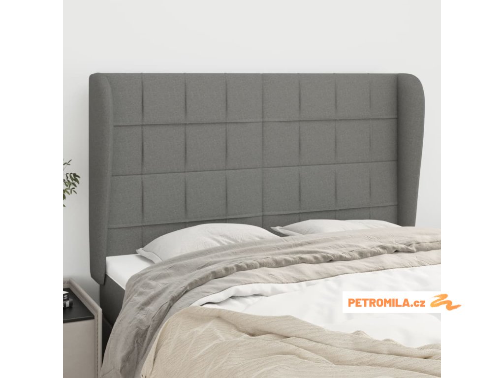 Čelo postele typu ušák tmavě šedé 147x23x118/128 cm textil