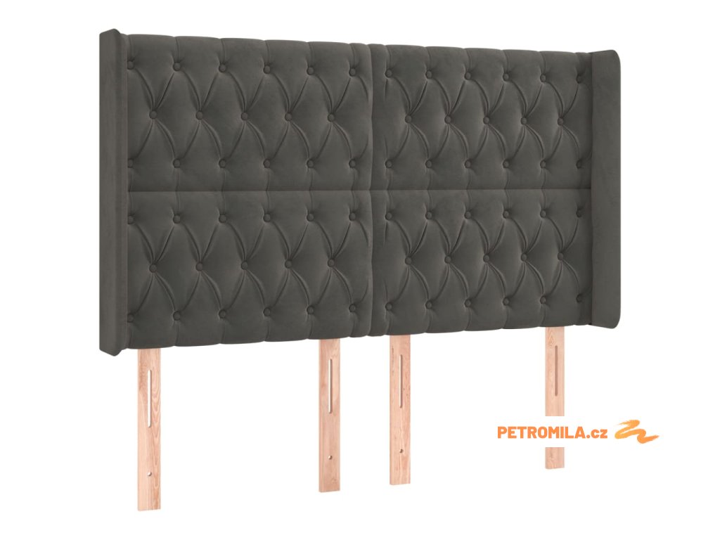 Čelo postele typu ušák tmavě šedé 163x16x118/128 cm samet