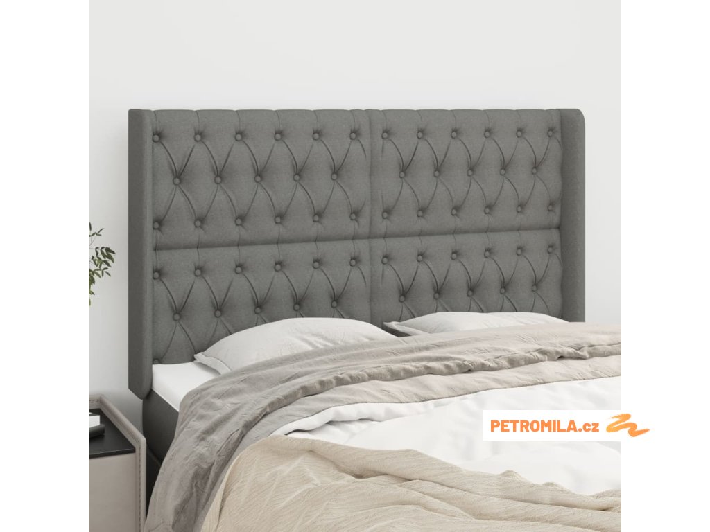 Čelo postele typu ušák tmavě šedé 163x16x118/128 cm textil
