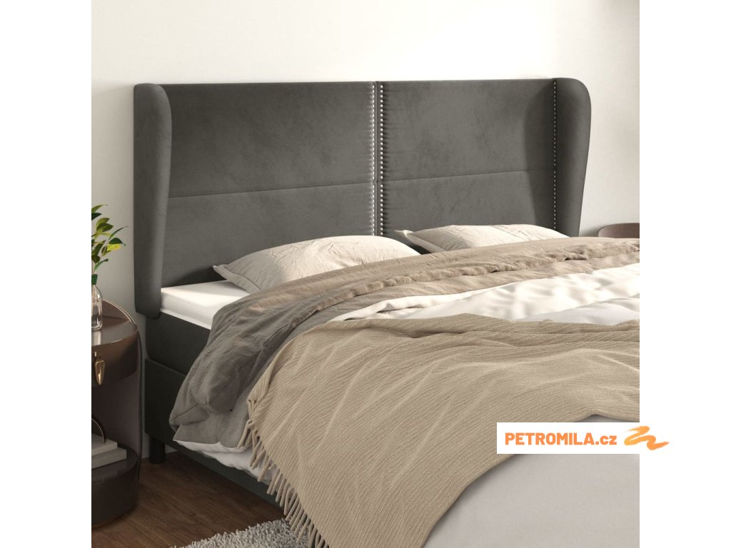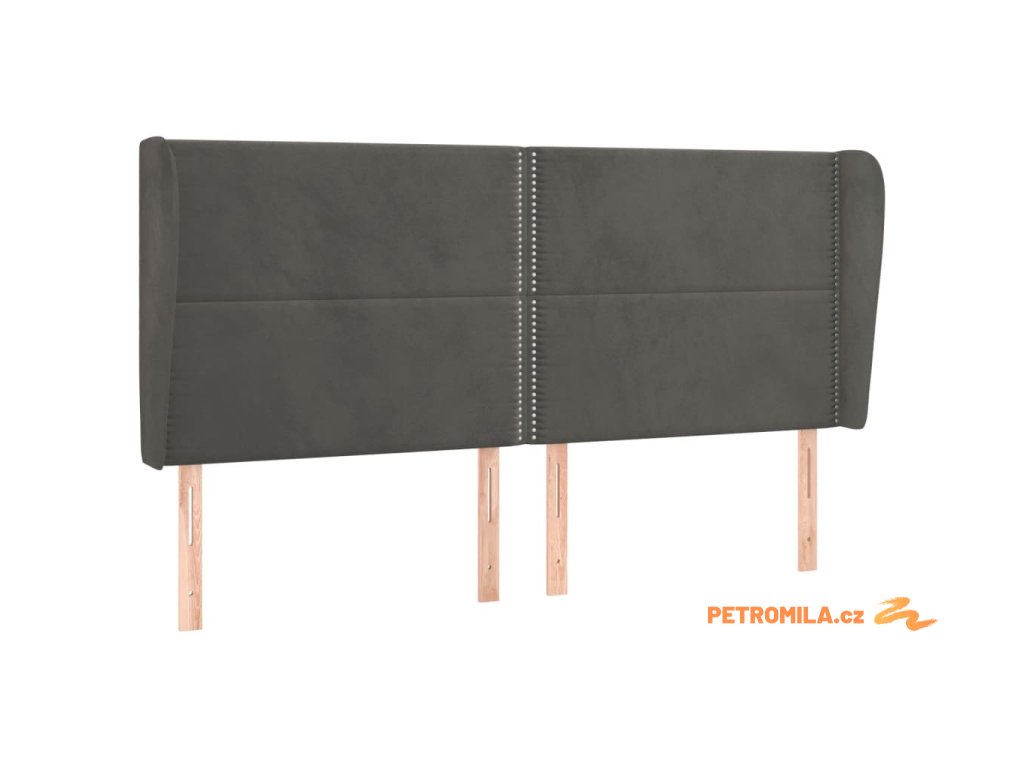 Čelo postele typu ušák tmavě šedé 163x23x118/128 cm samet