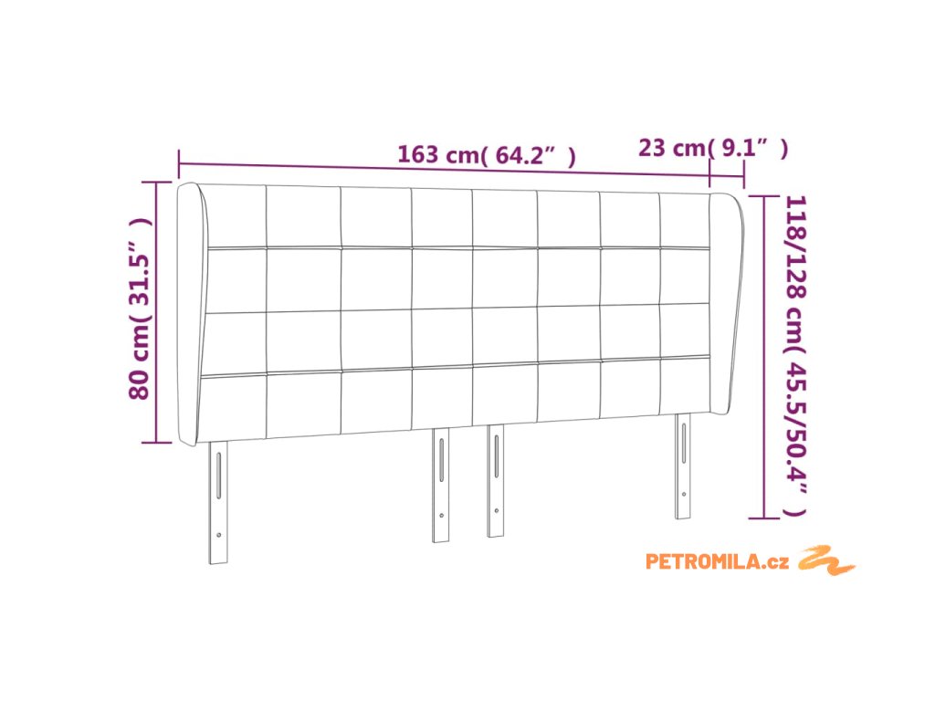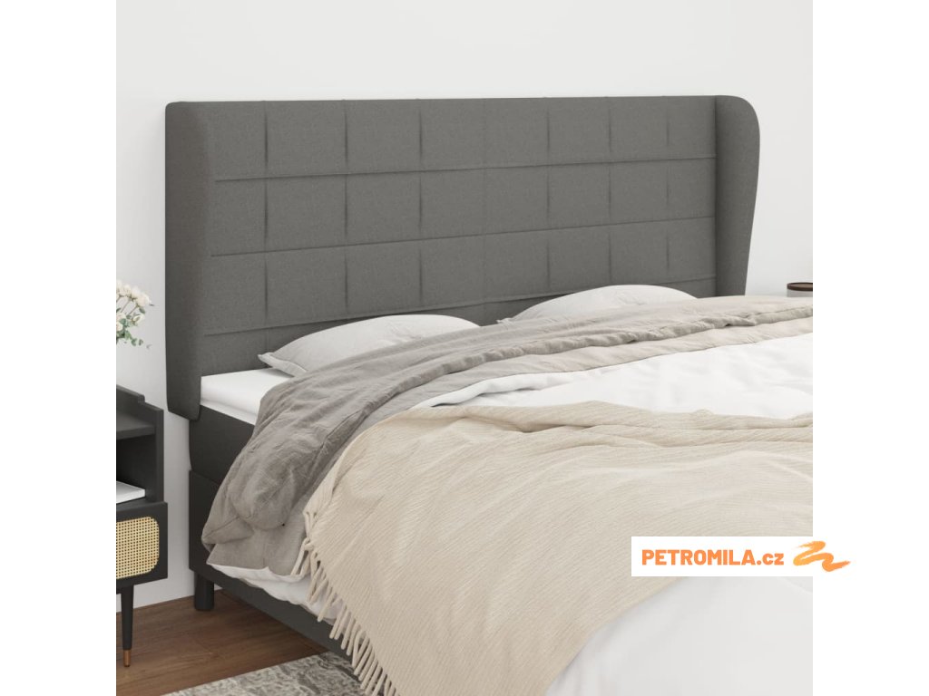 Čelo postele typu ušák tmavě šedé 163x23x118/128 cm textil