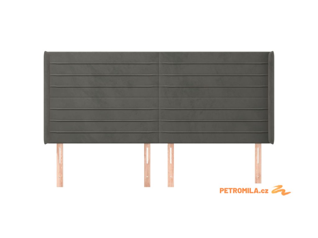 Čelo postele typu ušák tmavě šedé 183x16x118/128 cm samet