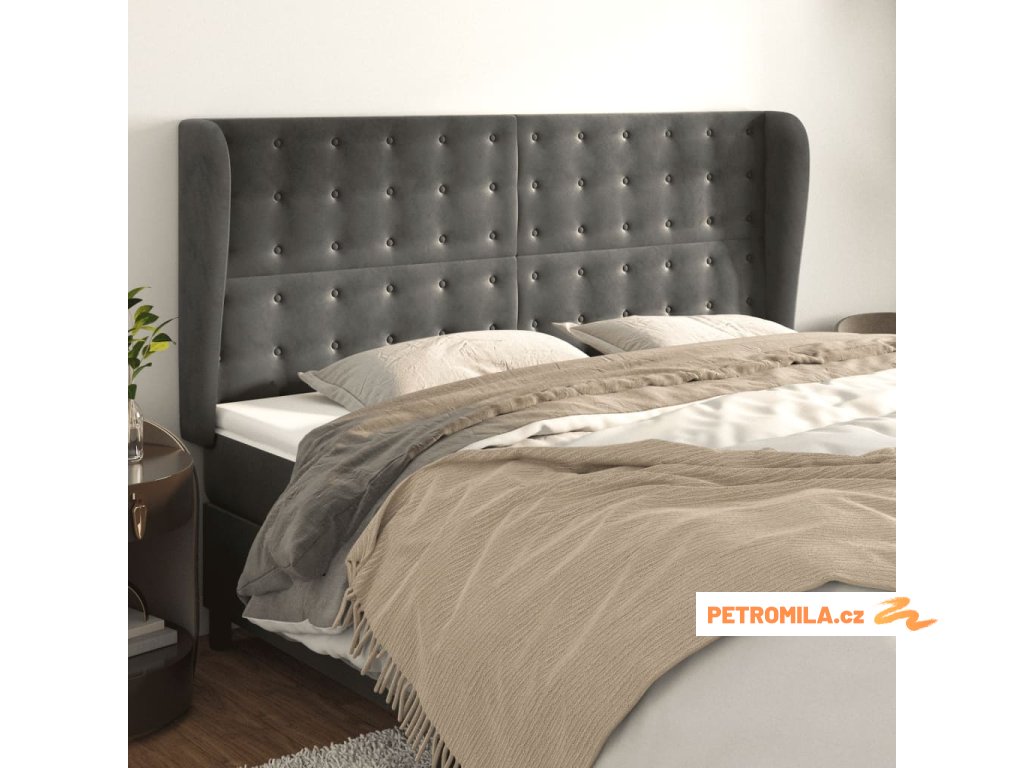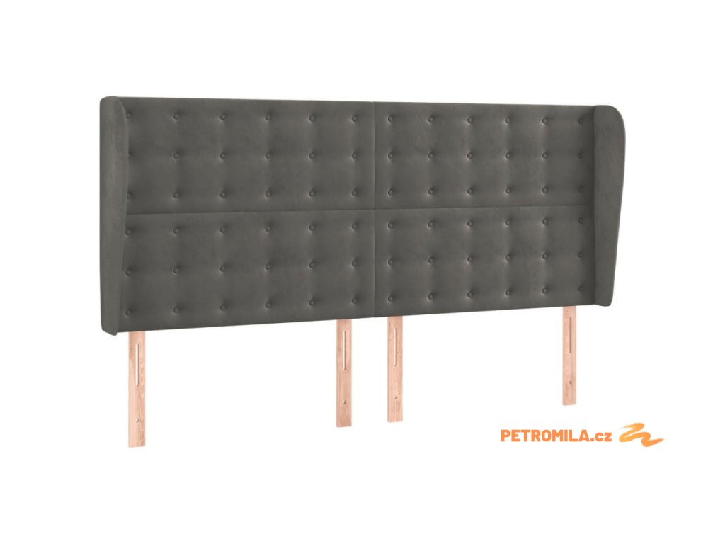 Čelo postele typu ušák tmavě šedé 183x23x118/128 cm samet