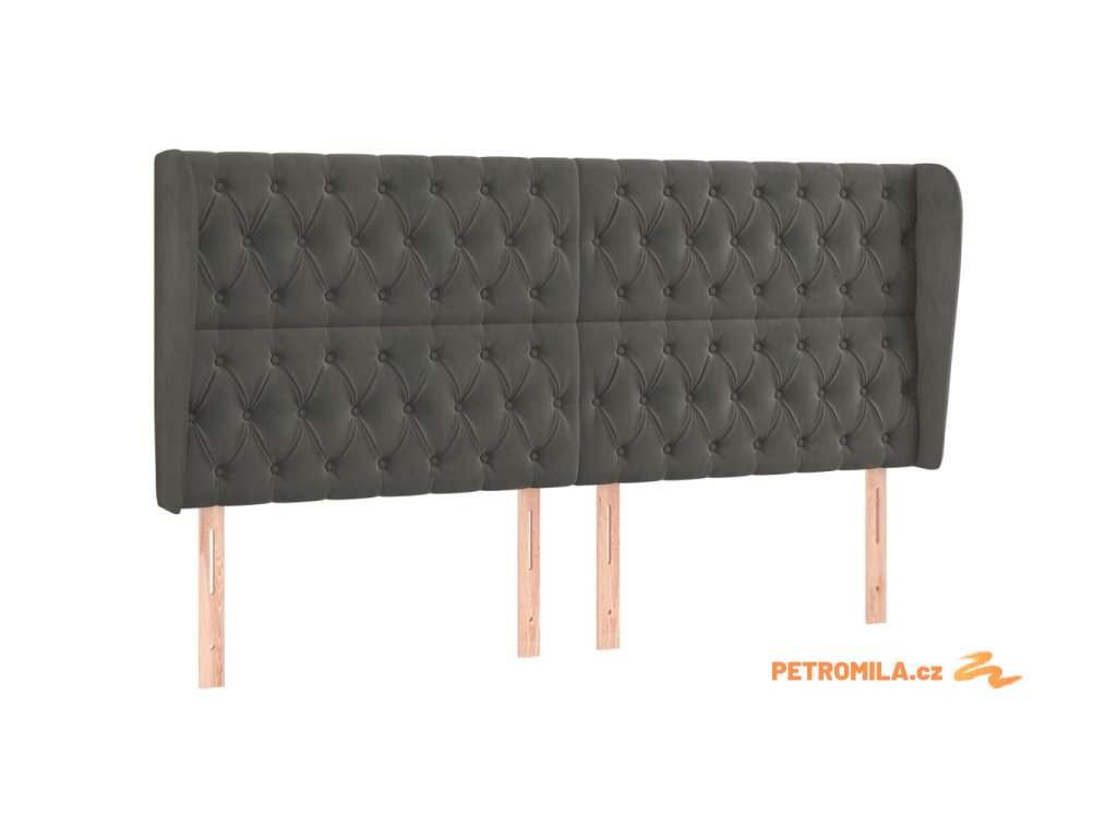 Čelo postele typu ušák tmavě šedé 183x23x118/128 cm samet