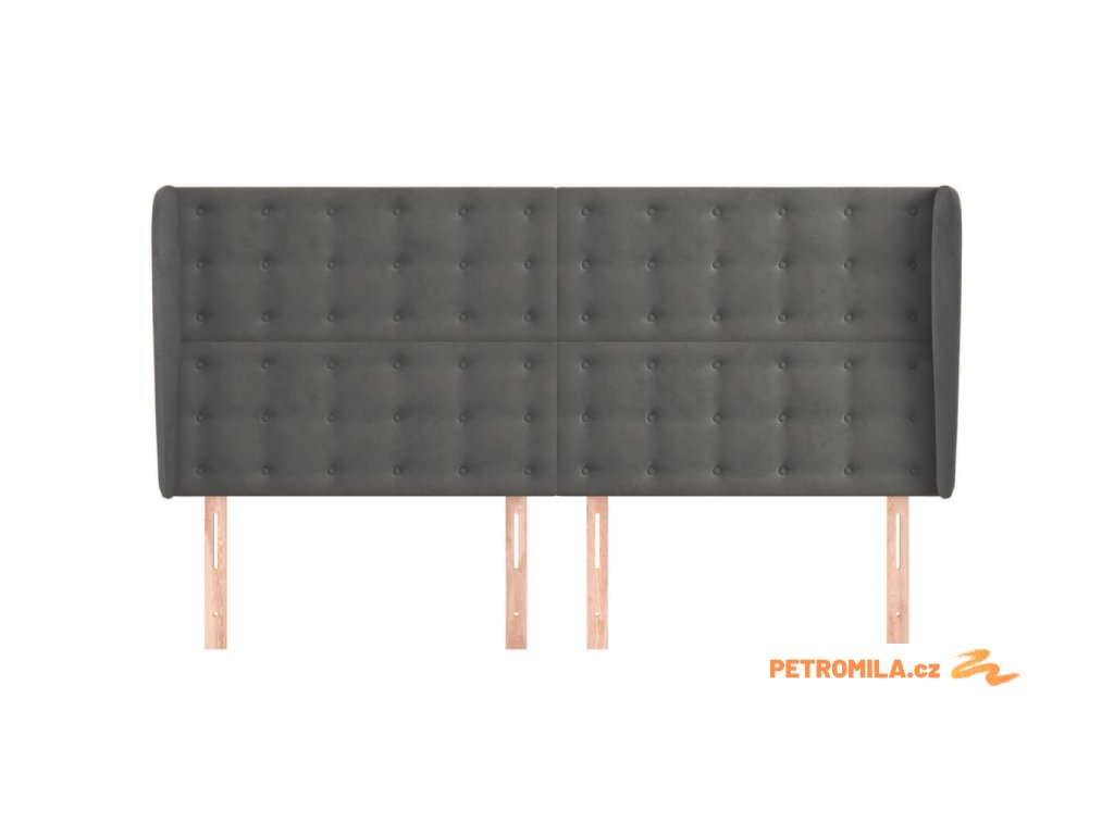 Čelo postele typu ušák tmavě šedé 203x23x118/128 cm samet