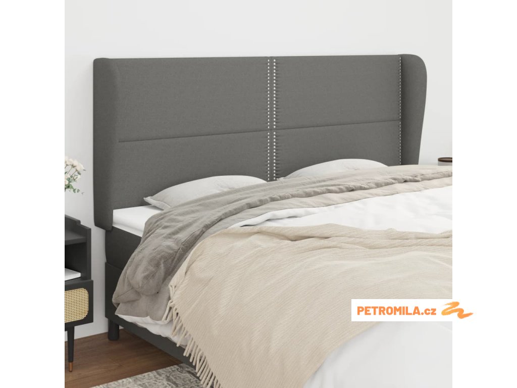 Čelo postele typu ušák tmavě šedé 203x23x118/128 cm textil