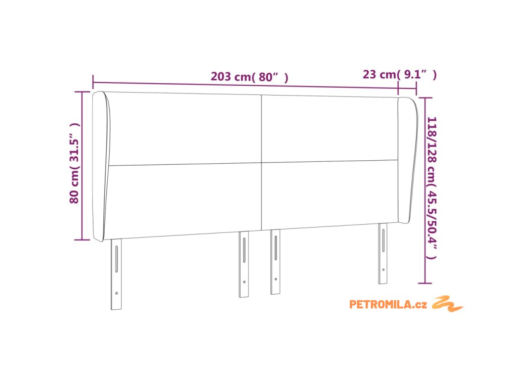 - Celkové rozměry: 203 x 23 x 118/128 cm (Š x H x V)
