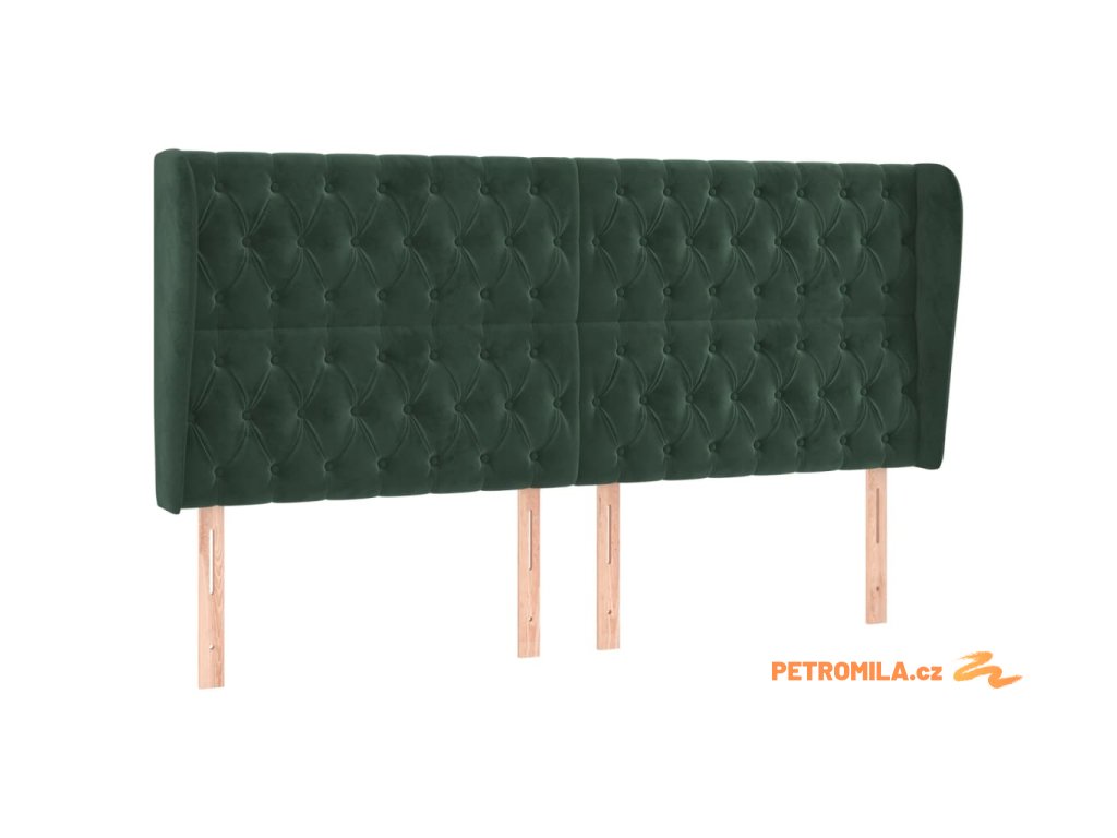 Čelo postele typu ušák tmavě zelená 183x23x118/128 cm samet