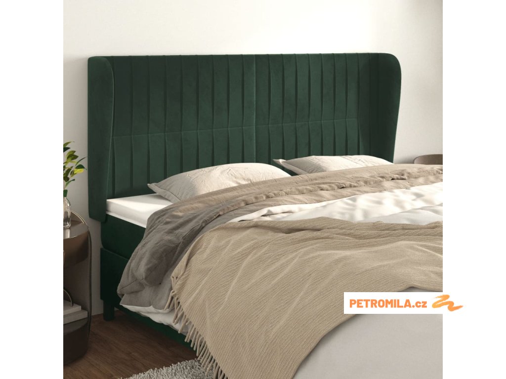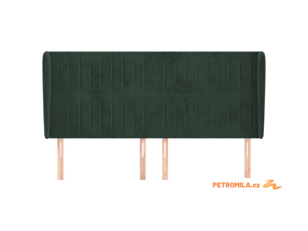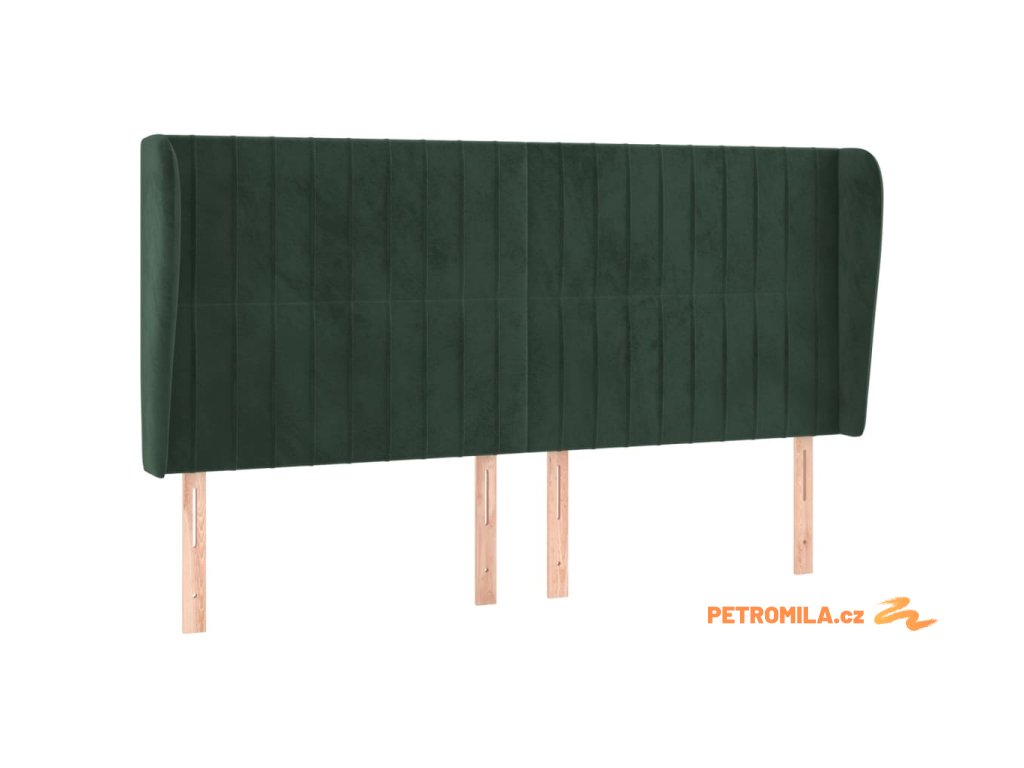 Čelo postele typu ušák tmavě zelená 203x23x118/128 cm samet
