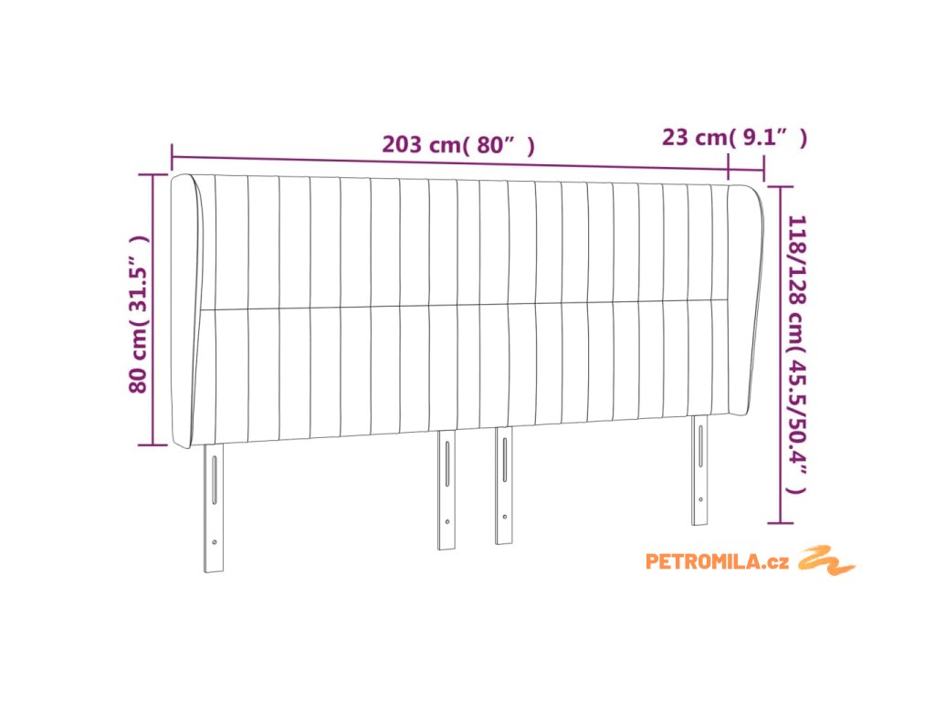 - Celkové rozměry: 203 x 23 x 118/128 cm (Š x H x V)