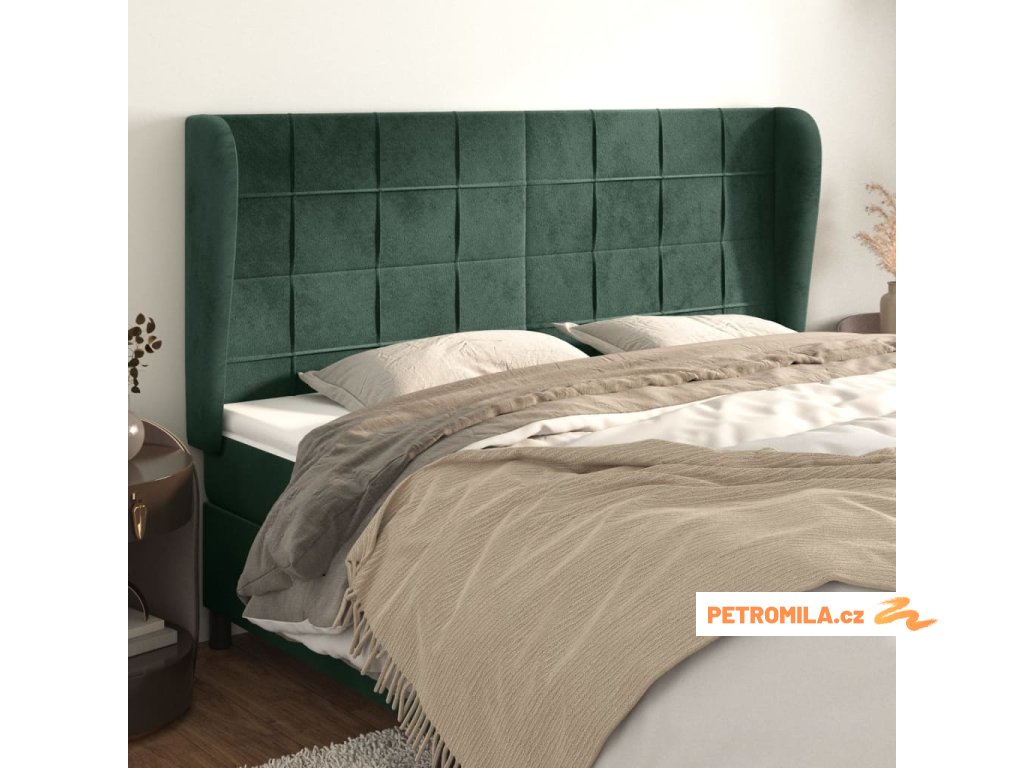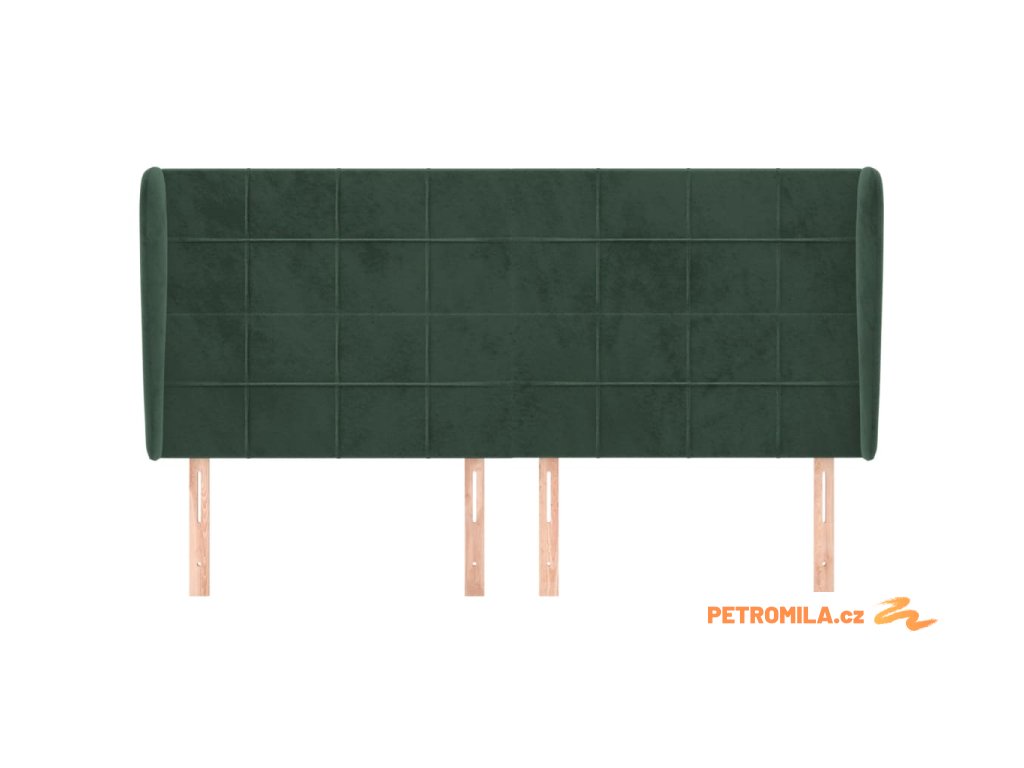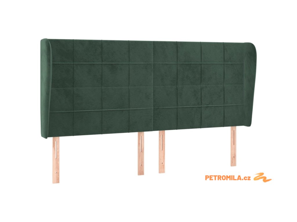 Čelo postele typu ušák tmavě zelená 203x23x118/128 cm samet