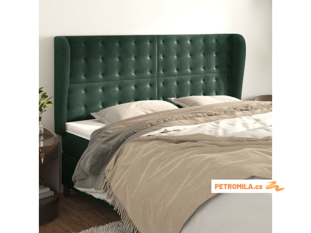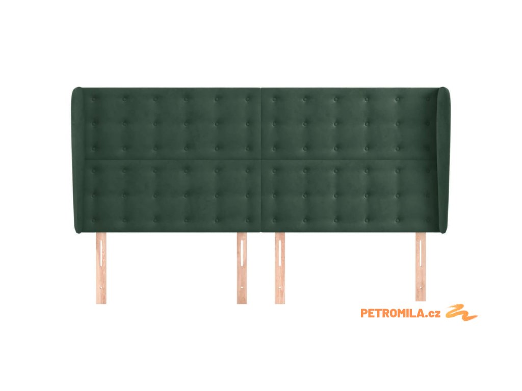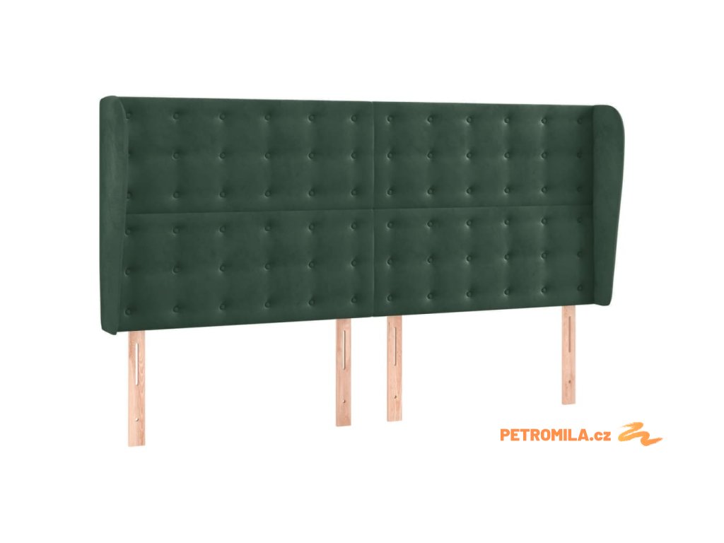 Čelo postele typu ušák tmavě zelená 203x23x118/128 cm samet