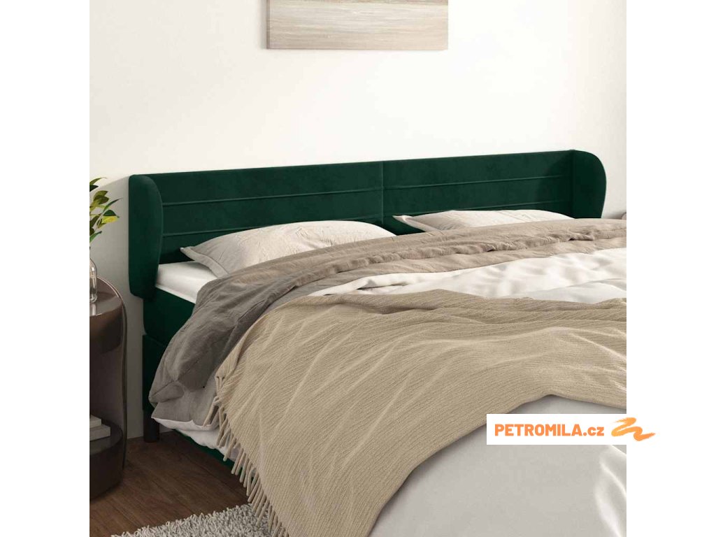 Čelo postele typu ušák tmavě zelené 203x23x78/88 cm samet