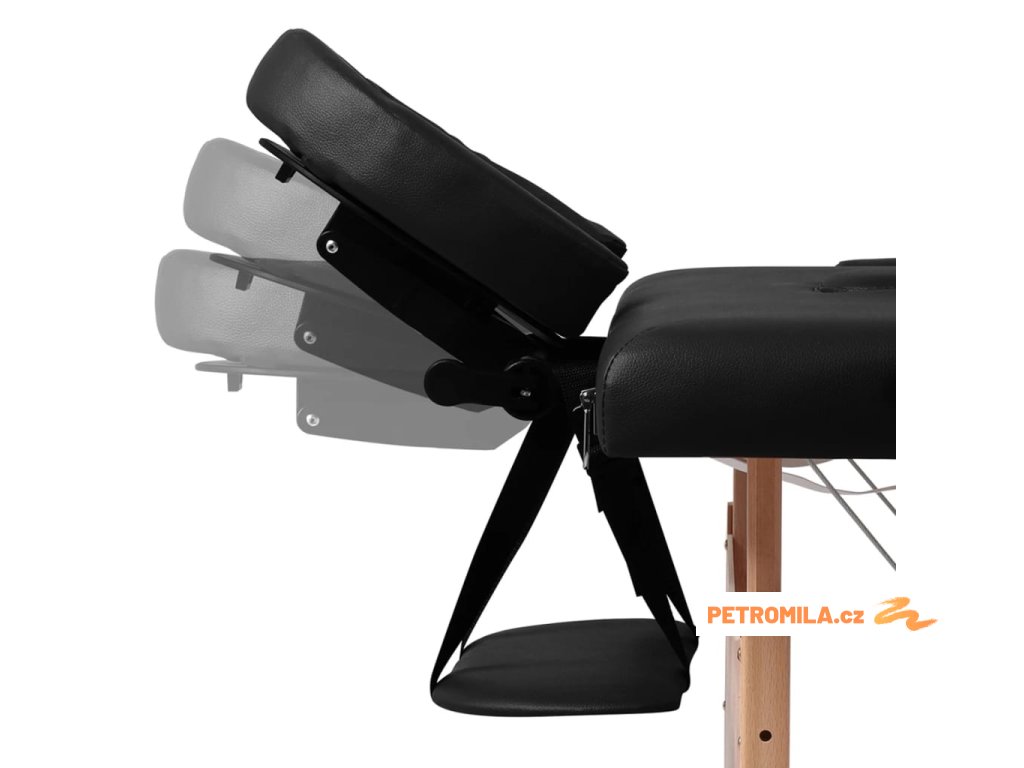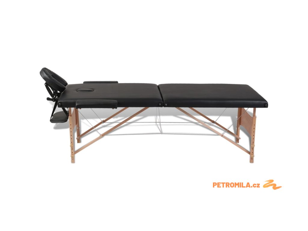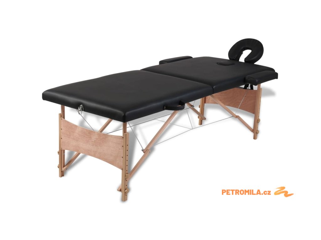 Černý skládací masážní stůl se 2 zónami a dřevěným rámem