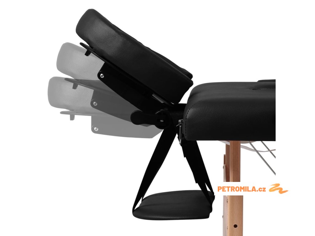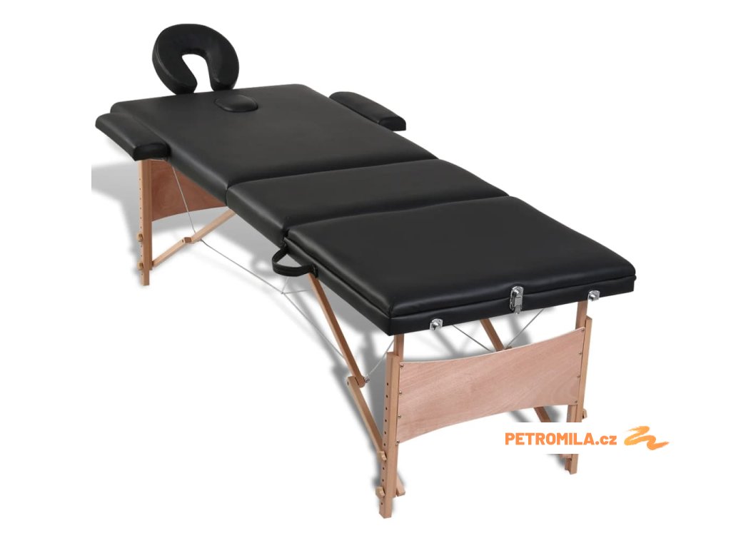 Černý skládací masážní stůl se 3 zónami a dřevěným rámem