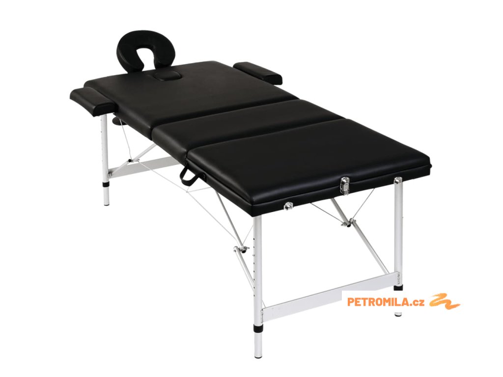 Černý skládací masážní stůl se 3 zónami a hliníkový rám