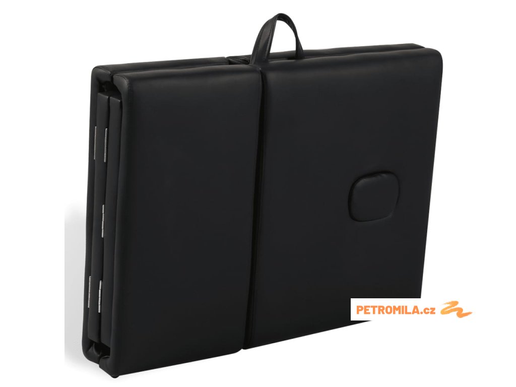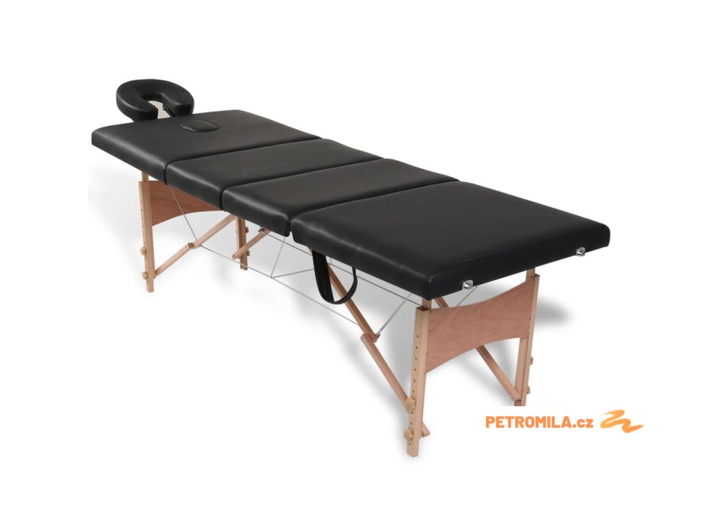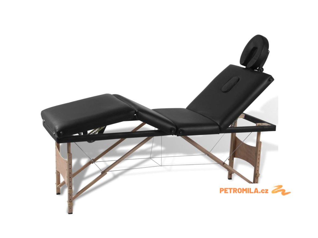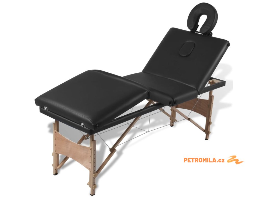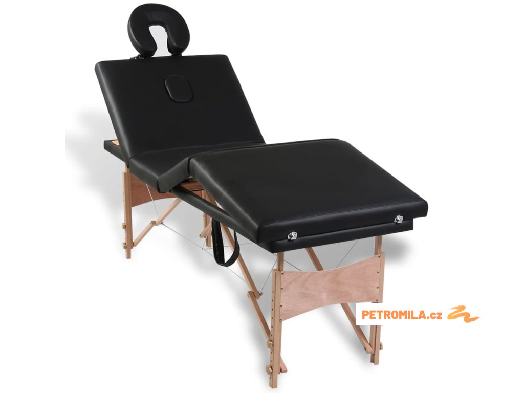 Černý skládací masážní stůl se 4 zónami a dřevěným rámem