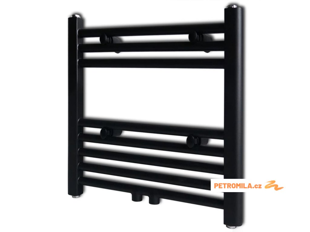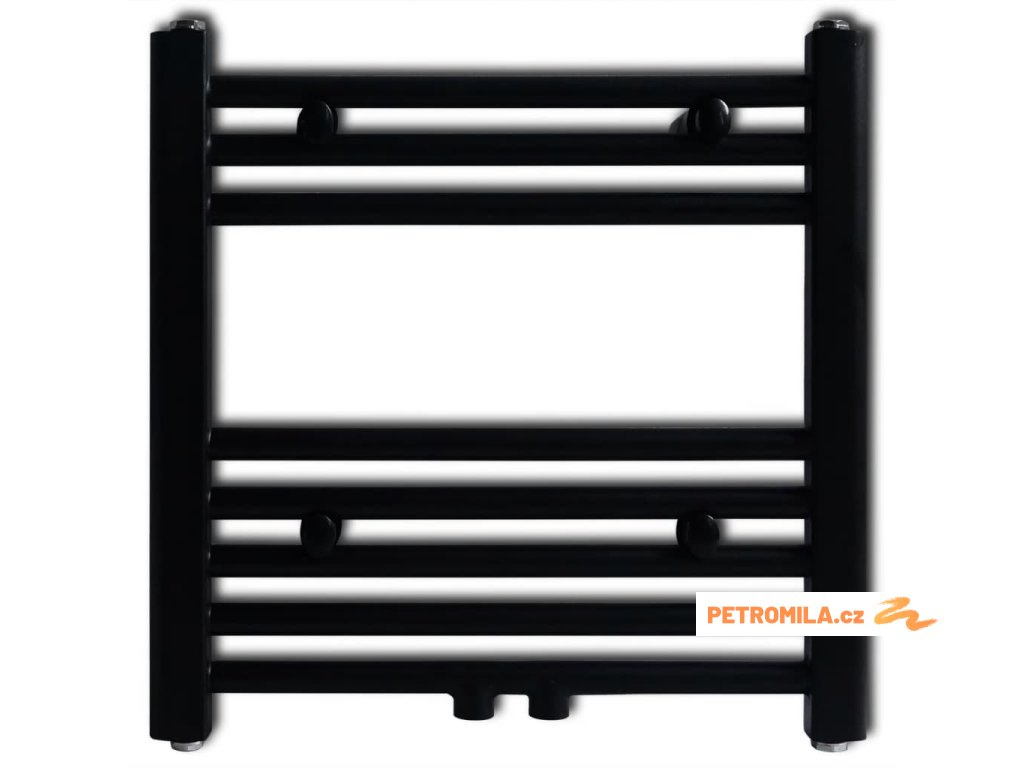Černý žebříkový radiátor na ručníky rovný ústřední topení 480 x 480 mm