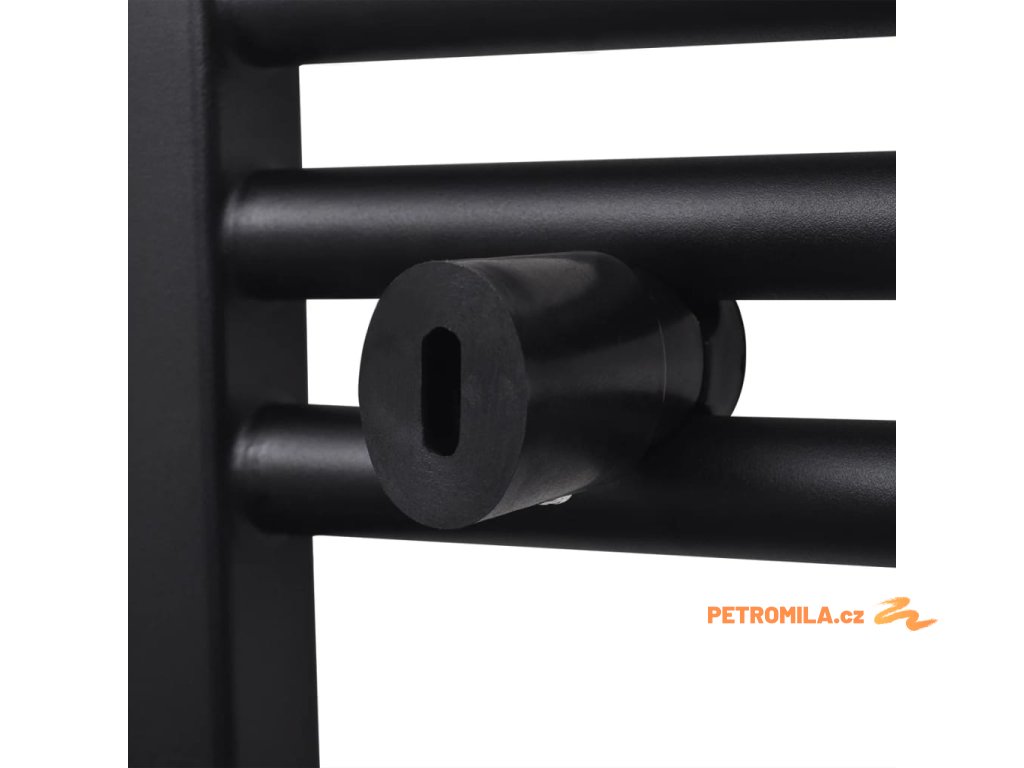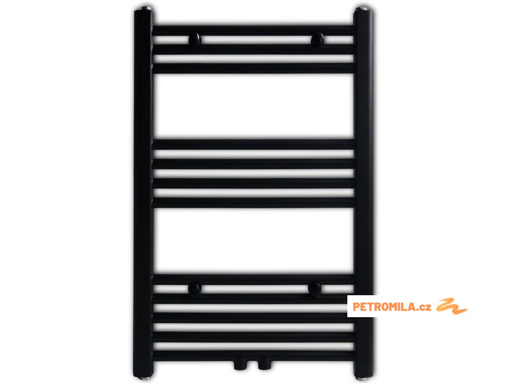 Černý žebříkový radiátor na ručníky rovný ústřední topení 500 x 764 mm