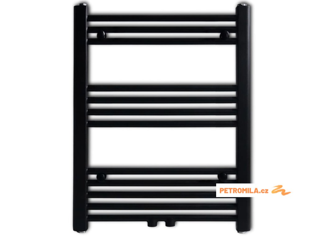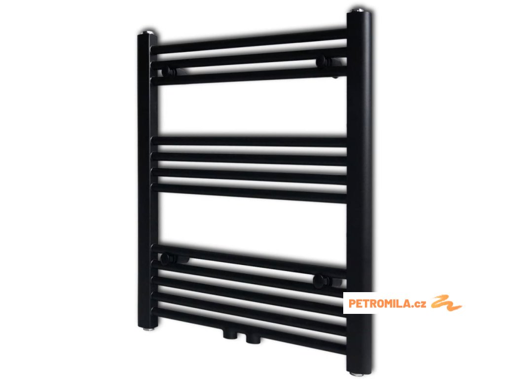 Černý žebříkový radiátor na ručníky rovný ústřední topení 600 x 764 mm