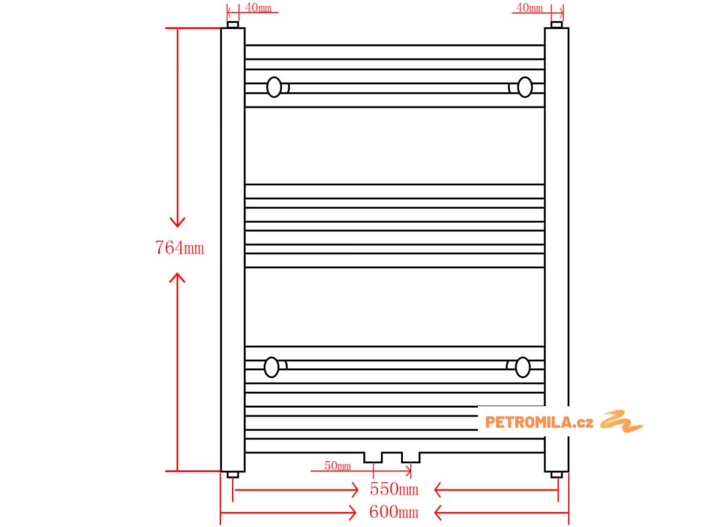 - Vzdálenost mezi středy trubek: 550 mm