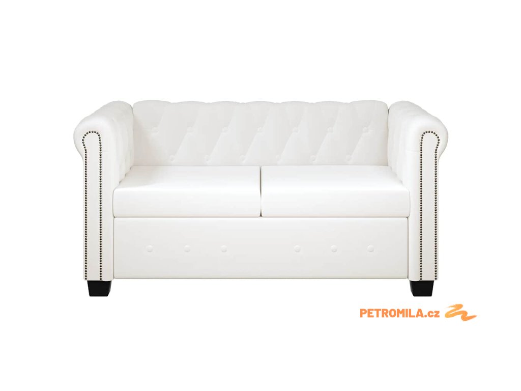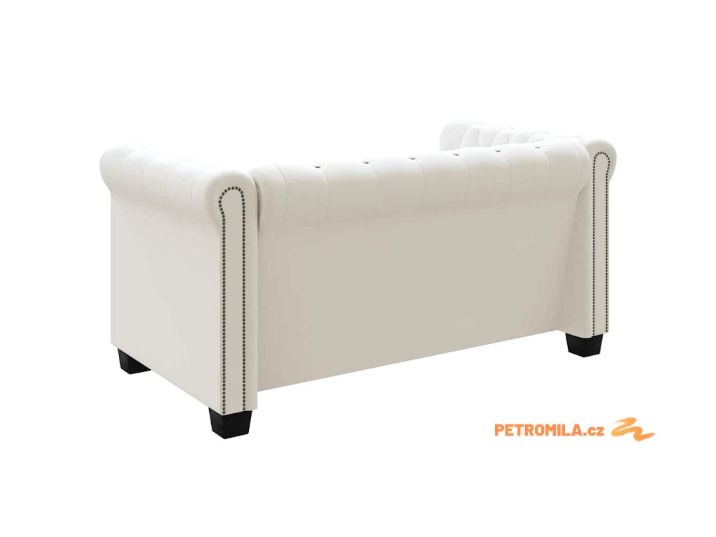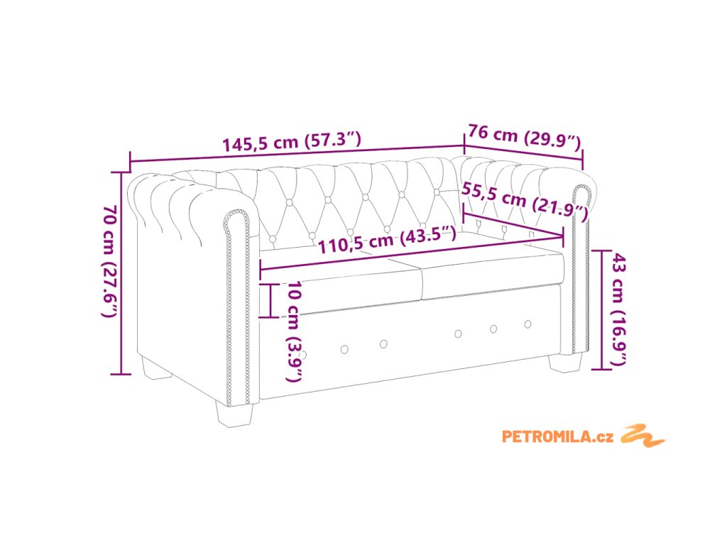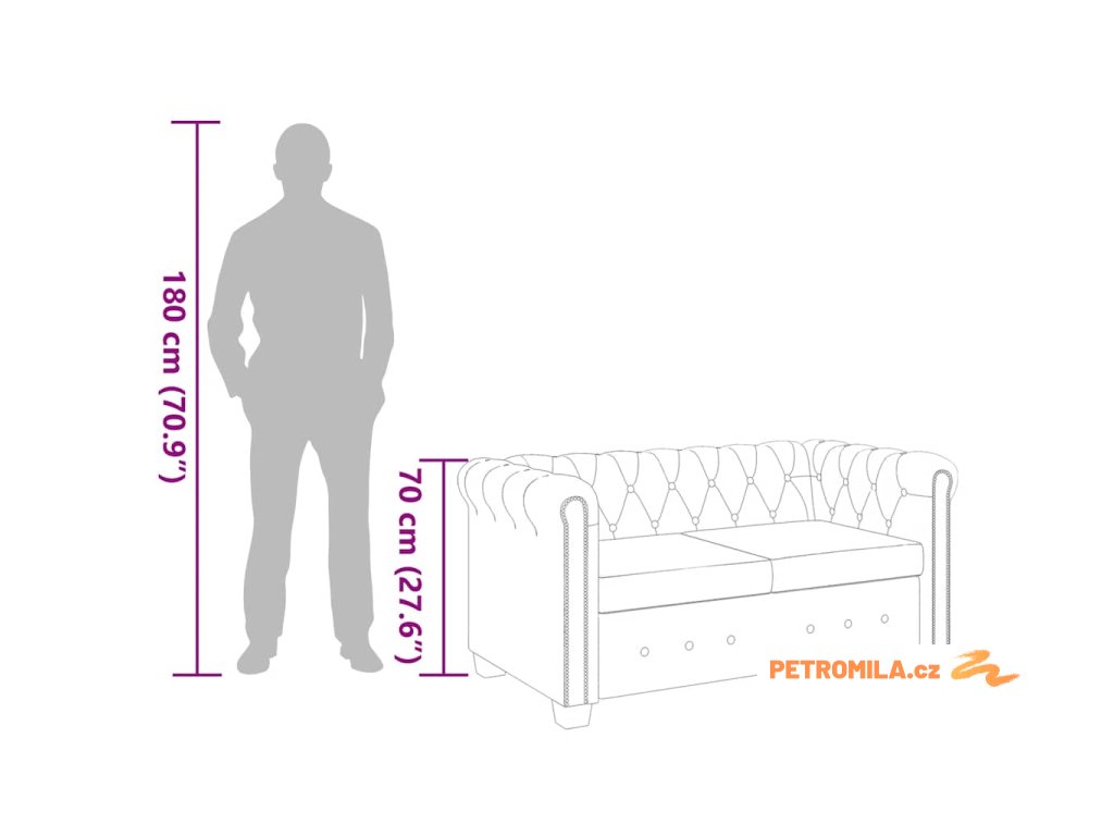 Tato sedačka Chesterfield je perfektní kombinací pohodlí a sofistikovanosti a bude skvělým doplňkem do každého domova či kanceláře. Tato 2místná pohovka s ozdobným prošíváním a cvočky a půvabně zakřivenými područkami dodá každému interiéru nádech luxusu a stylu.