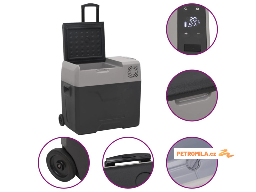 - Přenosné provedení: Chladicí box do auta lze pomocí teleskopické rukojeti a koleček snadno přemisťovat. Je to ideální vybavení na festivaly, výlety, pikniky a kempování.