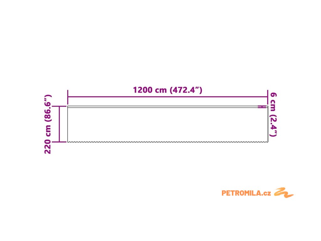 - Celkové rozměry: 1200 x 220 cm (D x Š)