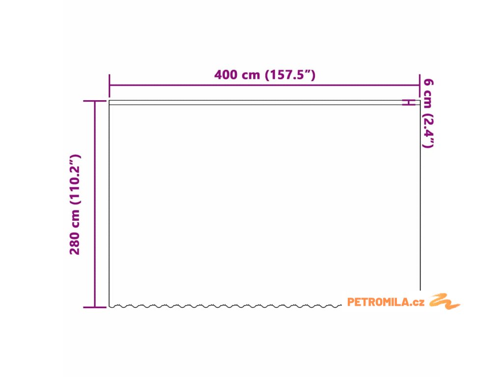 - Celkové rozměry: 400 x 280 cm (D x Š)