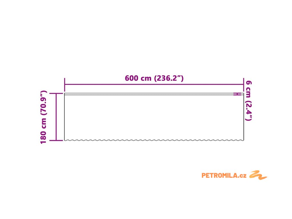 - Celkové rozměry: 600 x 180 cm (D x Š)