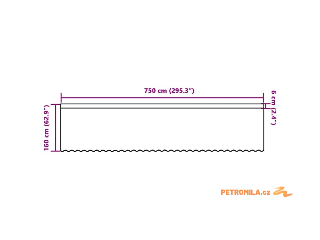 - Celkové rozměry: 750 x 160 cm (D x Š)