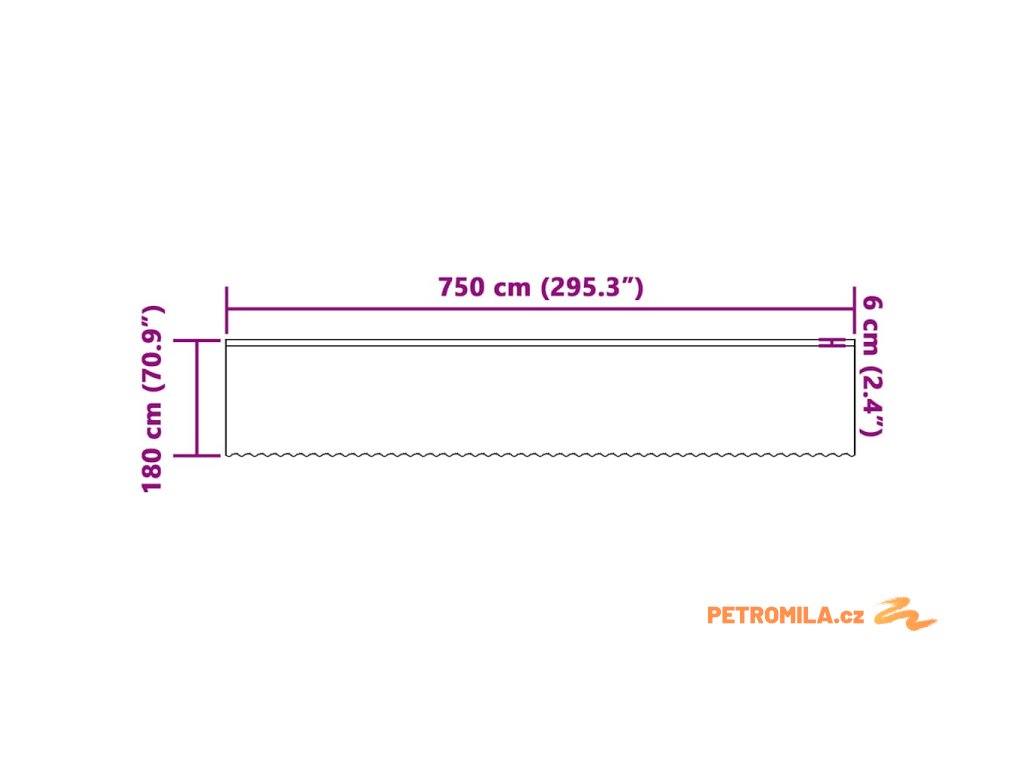 - Celkové rozměry: 750 x 180 cm (D x Š)
