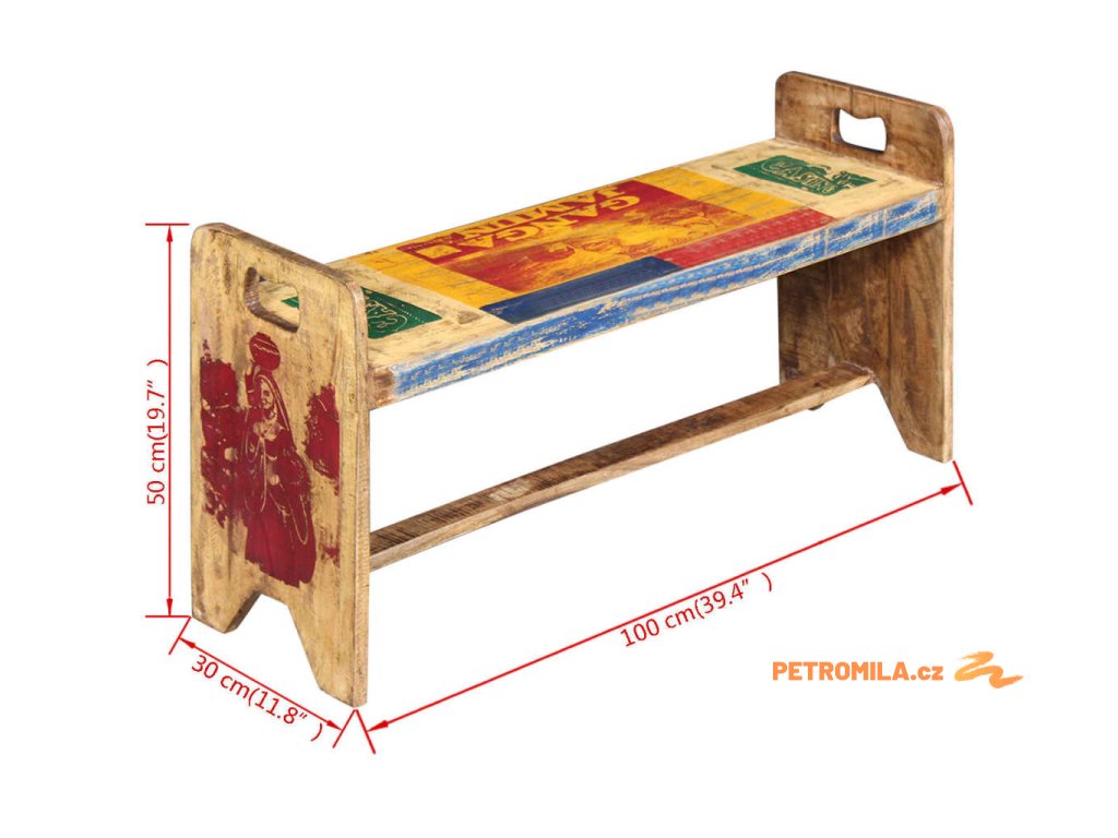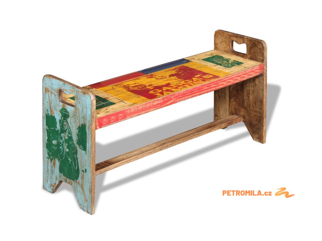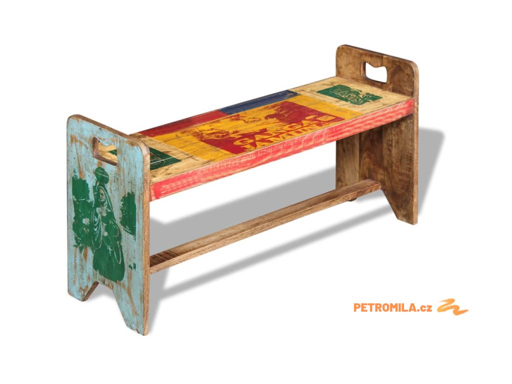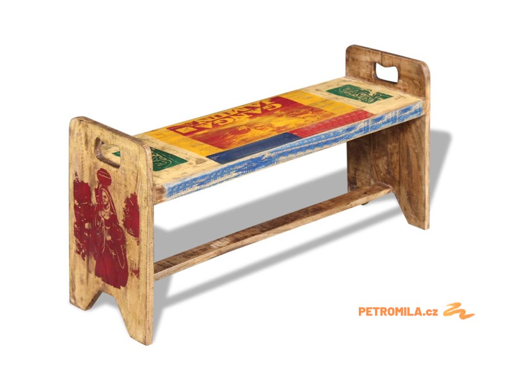 Tato vintage dřevěná lavice je jedinečný přírůstek do vaší domácnosti. Konstrukce z masivního dřeva je stabilní, robustní a vhodná pro každodenní použití. Svým pestrobarevným dekorativním vzorem tato lavice okamžitě rozzáří váš interiér.
