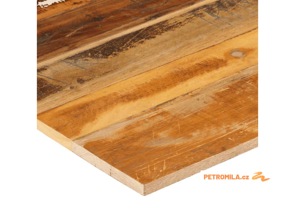 Náhradní stolová deska je vyrobená z masivního tropického recyklovaného dřeva, které je vyrobené ze dřeva, které pochází ze starých konstrukcí, jako jsou sklady, stodoly, přístřešky, mlýny a domy. Recyklované dřevo má vlastnosti celé řady různých druhů dřevin, jako je mangovník, tvrdé dřevo, teak apod. Známky užívání a viditelná kresba dřeva dává každému kusu jeho vlastní historii a jedinečný vzhled. Každý krok procesu se provádí s mimořádnou péčí, ať už jde o leštění, natírání nebo lakování. Masivní dřevěnou desku lze také použít pro konferenční stolky, odkládací stoly, barové stoly, telefonní stolky, konzolové stoly, noční stolky, police nebo jako nábytkovou desku. Tuto stolní desku můžete také kombinovat s libovolným stylem nohou podle vašich představ. Deska stolu se snadno čistí vlhkým hadříkem.