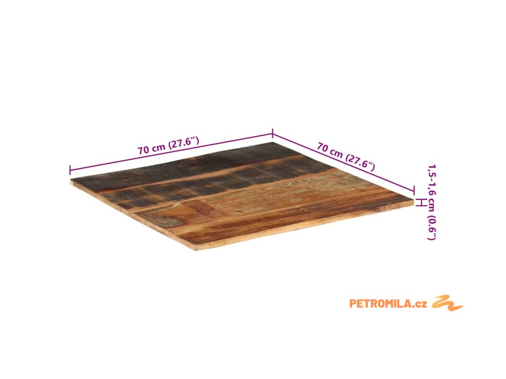 Čtvercová stolní deska 70 x 70 cm 15–16 mm recyklované dřevo