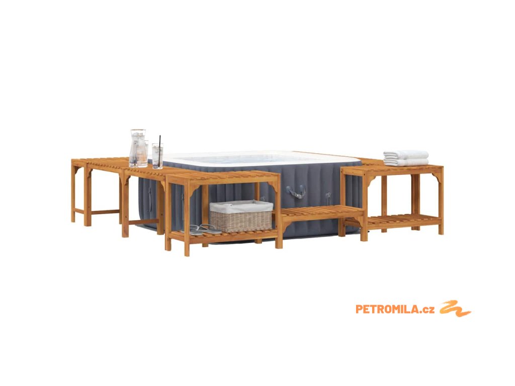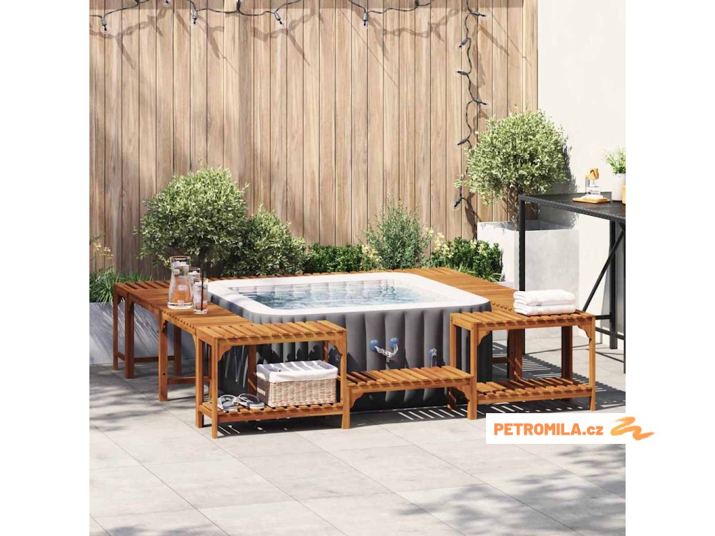 Tohle venkovní zastřešení vířivky je ideální doplněk tvý zahrady nebo terasy, spojuje praktičnost se stylem. Je to z masivního akáciového dřeva, který dodává teplou atmosféru a oživí jakýkoliv venkovní prostor. Moderní design je jednoduchý a funkční, takže máš k dispozici pohodlný koutek pro odpočinek a vychutnávání si vířivky.