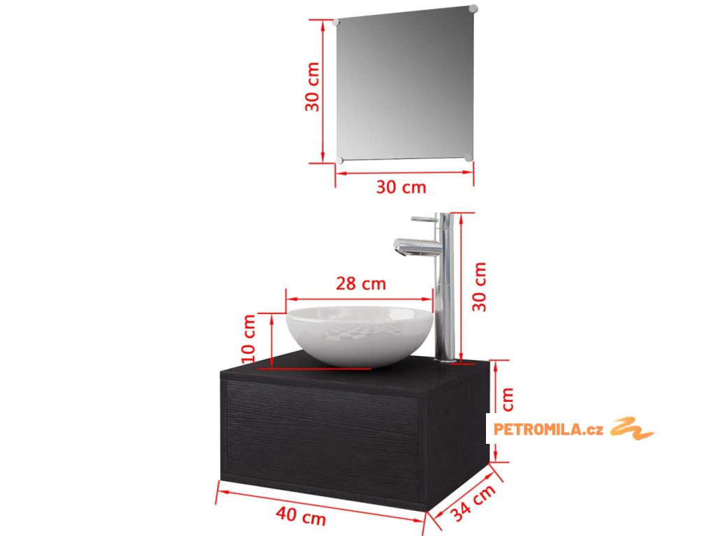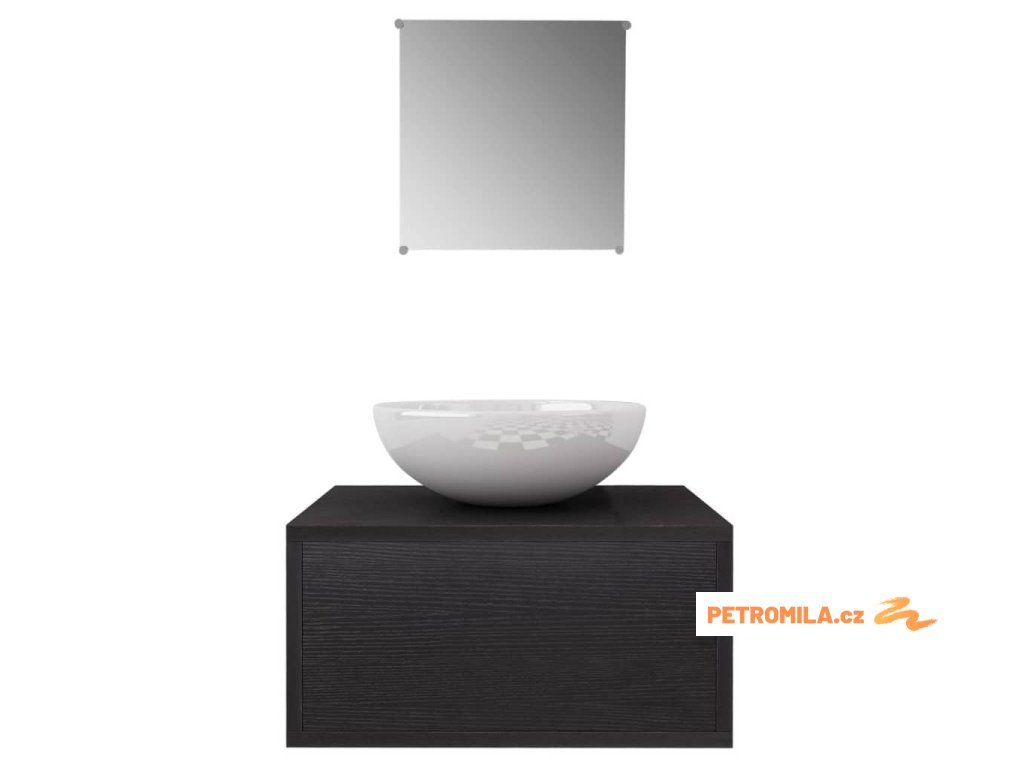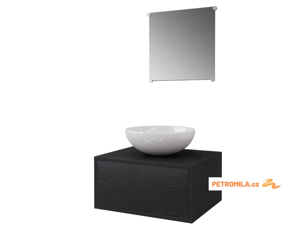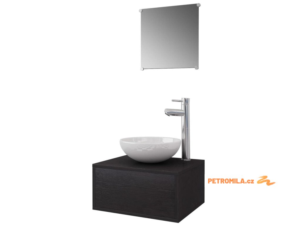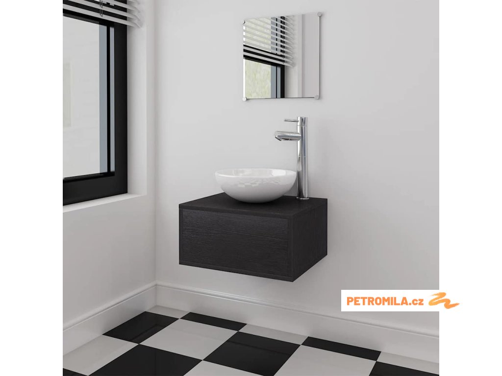 Čtyřkusový set koupelnového nábytku s umyvadlem a baterií, černý