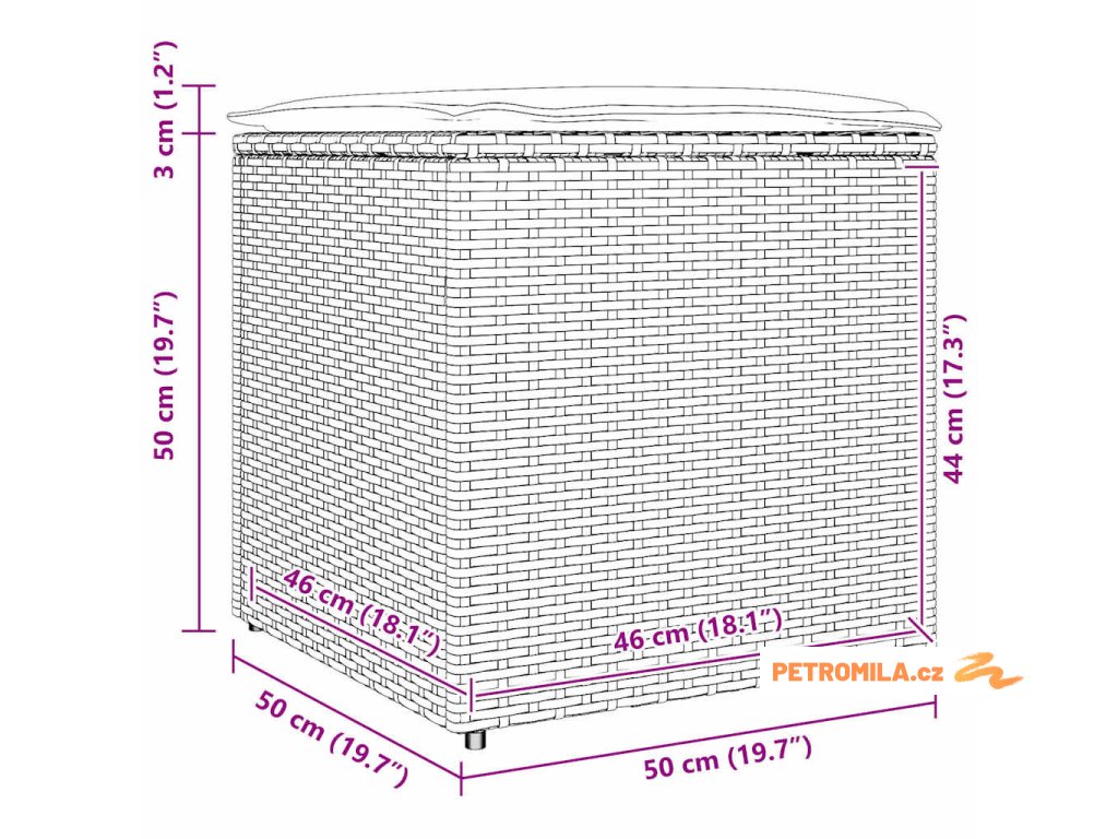 Cushion box s úložištěm Hnědá 50 x 50 x 50 cm polyratan