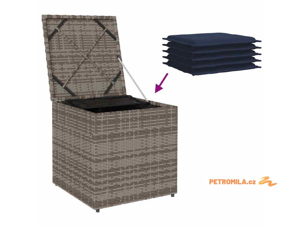 Cushion box s úložištěm Šedá 50 x 50 x 50 cm polyratan