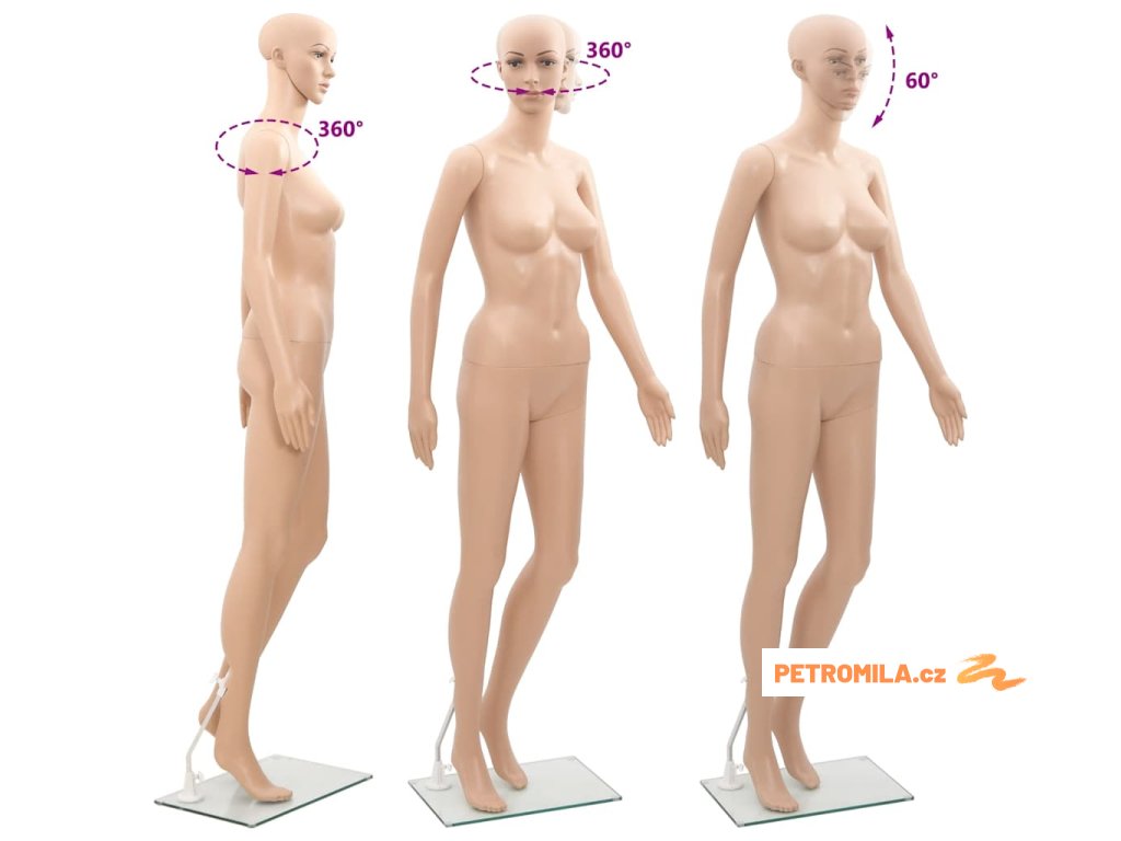 Tuto dámskou figurínu lze použít k vystavování oděvů, paruk, doplňků nebo obuvi ve výlohách.