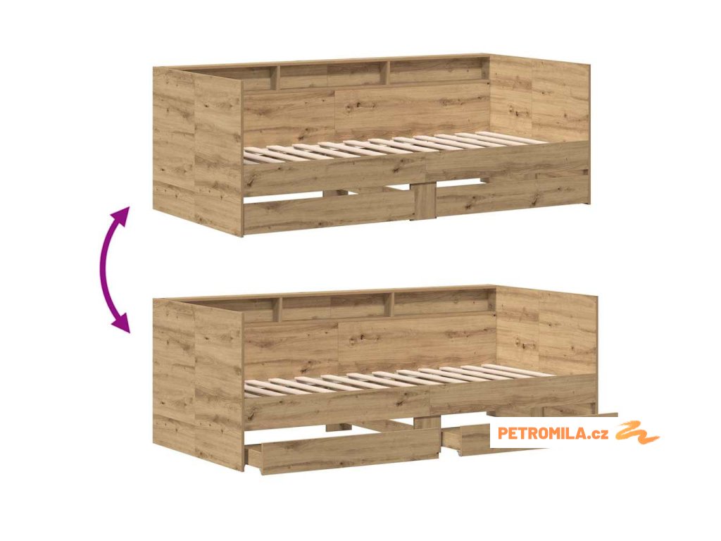 Toto rustikální denní lůžko z inženýrského dřeva má zásuvky a skvěle zapadá do moderních prostor. Jeho jednoduché linie a minimální design jsou ideální pro každou ložnici, co preferuje jednoduchost. Může se používat jako pohovka během dne a jako pohodlná postel v noci - perfektní pro malé byty. Jeho nenáročný styl a pevná konstrukce umožňují mnoho možností dekorace, takže si ho můžete přizpůsobit podle sebe.