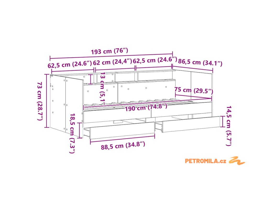 Toto rustikální denní lůžko z inženýrského dřeva má zásuvky a skvěle zapadá do moderních prostor. Jeho jednoduché linie a minimální design jsou ideální pro každou ložnici, co preferuje jednoduchost. Může se používat jako pohovka během dne a jako pohodlná postel v noci - perfektní pro malé byty. Jeho nenáročný styl a pevná konstrukce umožňují mnoho možností dekorace, takže si ho můžete přizpůsobit podle sebe.