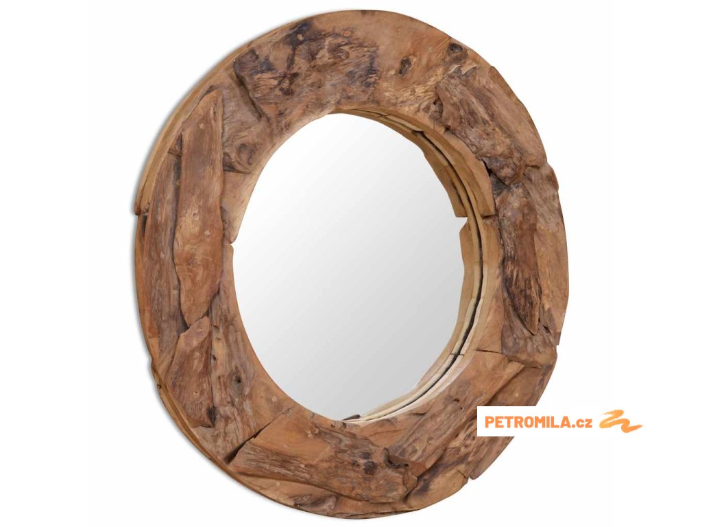 Rám zrcadla je vyroben z kousků teaku, které jsou náhodně uspořádané do nepravidelného tvaru. Řemeslné zpracování jen podtrhuje venkovské vzezření zrcadla. Zrcadlo lze umístit do každé místnosti; mimo to skvěle vynikne třeba i v koupelně.