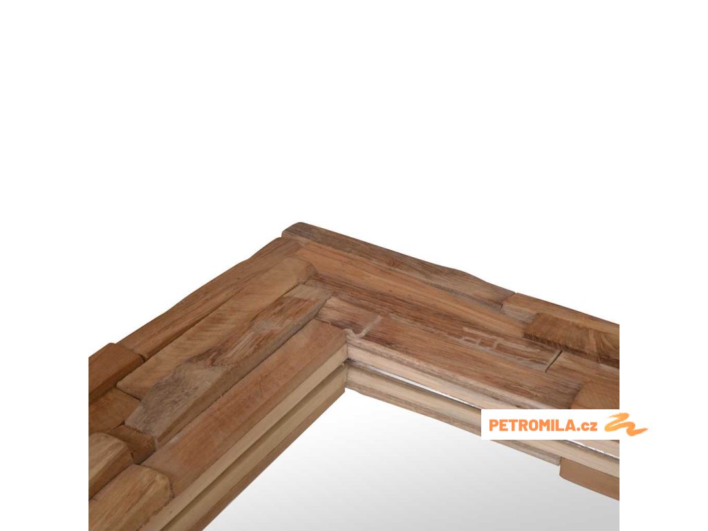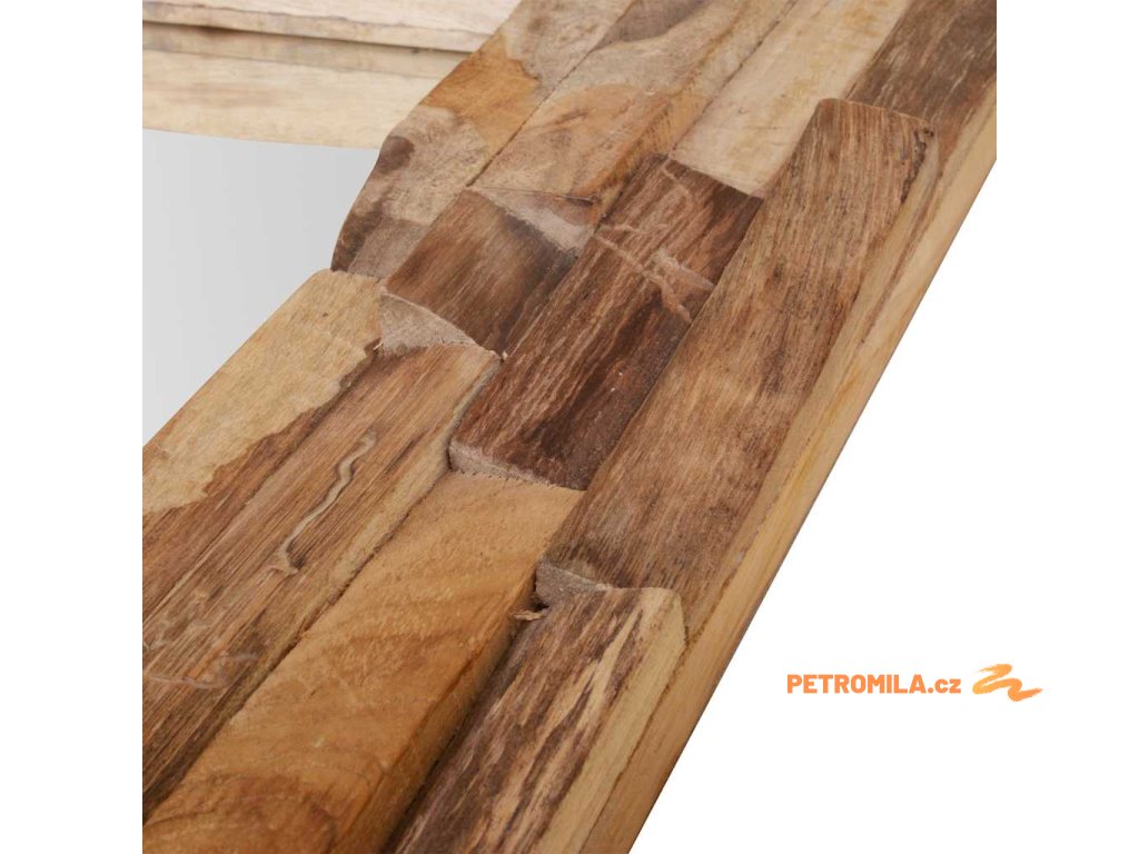 Rám zrcadla je vyrobený z kousků teaku. Řemeslné zpracování jen podtrhuje venkovské vzezření zrcadla. Zrcadlo lze umístit do každé místnosti a skvěle vynikne také v koupelně.