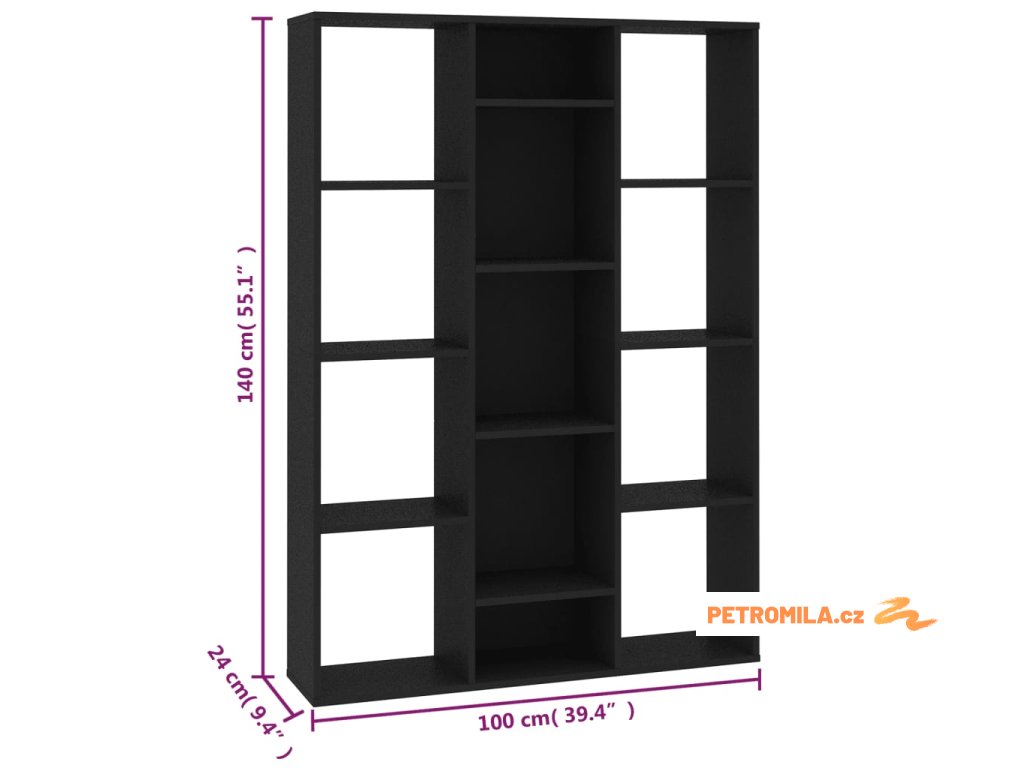 Dělicí stěna / knihovna černá 100x24x140 cm kompozitní dřevo
