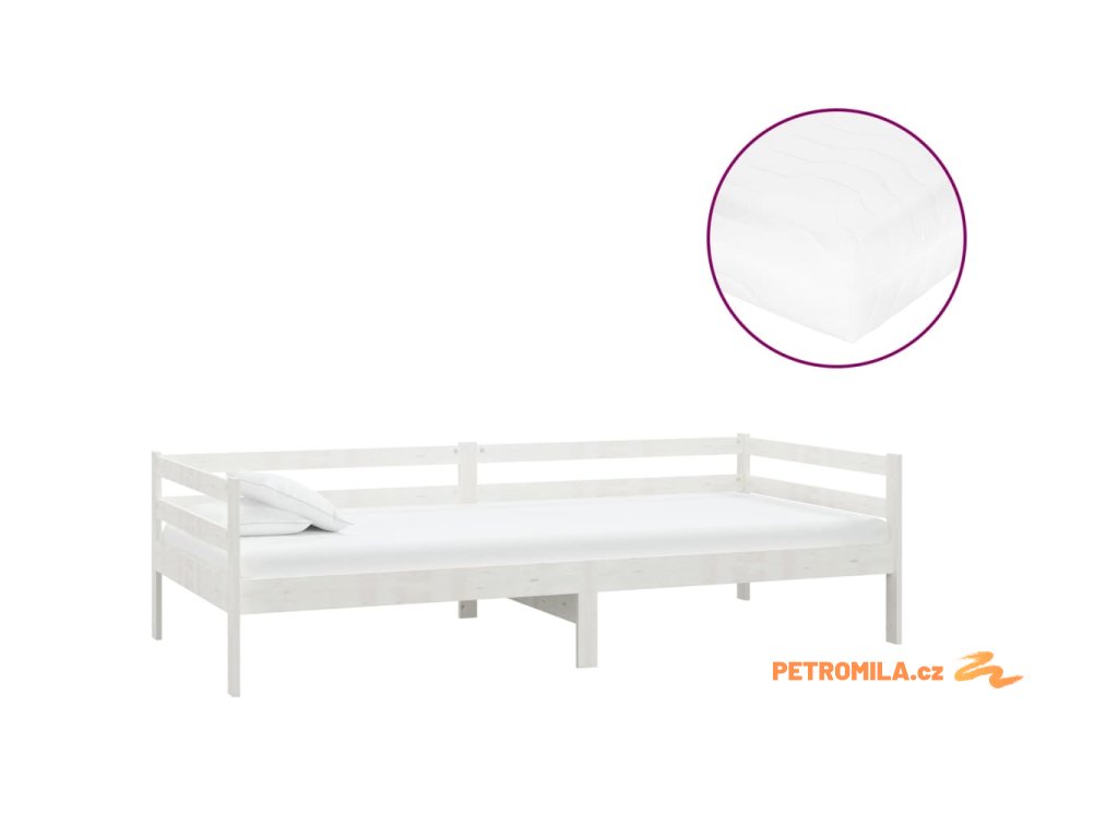 Denní postel s matrací 90 x 200 cm bílá masivní borové dřevo