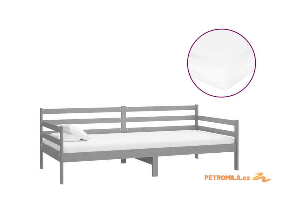 Denní postel s matrací 90 x 200 cm šedá masivní borové dřevo